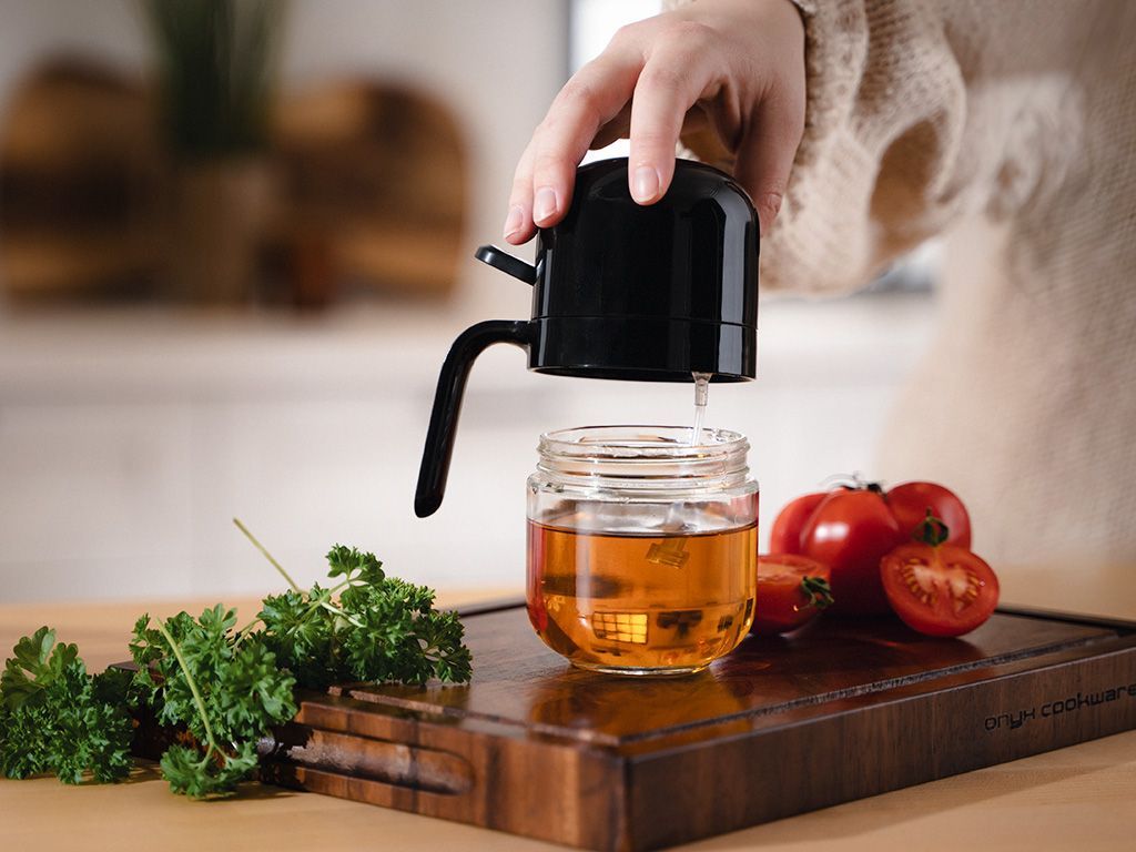 ONYX COOKWARE™ OIL SPRAY – 300ML on suunniteltu monipuolisuutta ja helppokäyttöisyyttä silmällä pitäen. Kevyt ja ergonominen muotoilu tekee siitä täydellisen sekä kotikokeille että ruokaharrastajille. Ruoanlaitosta ja leivonnasta salaattien kevyeseen öljyämiseen – tämä öljysuihke on keittiön jokapaikanhöylä.