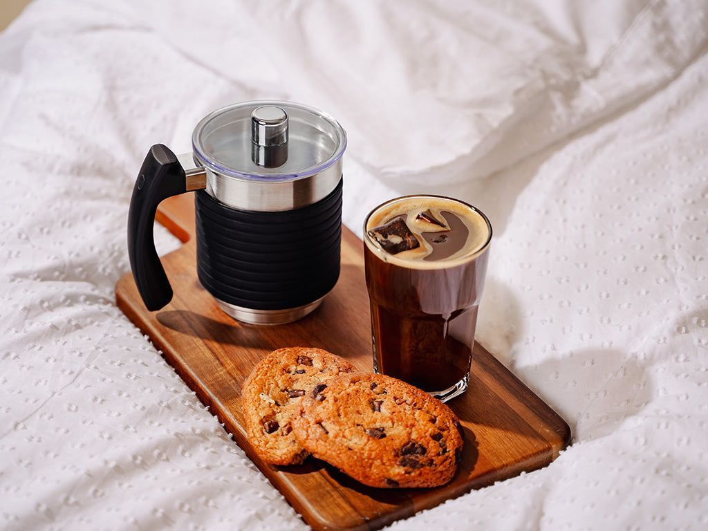 Yhdellä painalluksella vaahdotin herää eloon, muuttaen kylmän maidon samettiseksi vaahdoksi. Kun ystäväsi kokoontuvat pöydän ääreen, kaadat cappuccinoa, jonka päällä on täydellinen vaahtokerros. ONYX COOKWARE™ MAITOVAAHDOTIN – 400ML ei ainoastaan tarjoa erinomaista suorituskykyä, vaan siitä tulee myös brunssisi keskipiste, herättäen keskustelua ja ihailua.